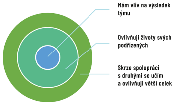 Mít vliv na svůj život je společný jmenovatel manažerské pozice. Dál je důležitý vliv na výsledky týmu, životy podřízených, vzájemné učení, a nakonec větší celek.