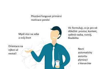 Lidi myslí více na sebe, zvyšuje se důraz na jejich osobní život a osobní požadavky. Víc formulují, co je pro ně důležité: prostor, kontext, zpětná vazba, rozvoj, flexibilita, peníze, mentoring, sick days, víc benefitů, dobrovolnictví…