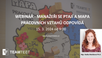 Pusťe si webinář, ve kterém Radka Maňáková ukazuje, jak Mapa pracovních vztahů dokáže přinášet odpovědi na mnoho manažrských otázek. Především na to, jak dosahovat výsledků právě s lidmi, které mám ve svém týmu.